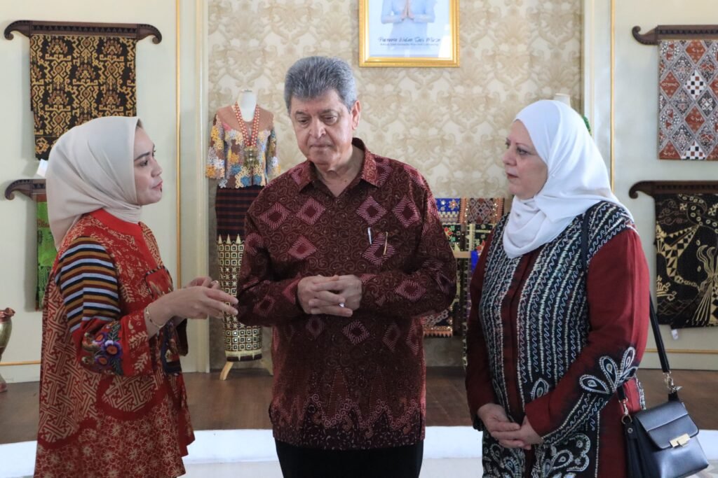 Battikpost.site, Bandar Lampung – Duta Besar Palestina untuk Indonesia, Dr. Zuhair S.M. Al-Shun, bersama istri, berkunjung ke Kantor Sekretariat Dewan Kerajinan Nasional Daerah (Dekranasda) Provinsi Lampung, Kamis (8/5/2025). Kunjungan ini disambut langsung oleh Ketua Dekranasda Lampung, Purnama Wulan Sari Mirza, dan jajaran pengurus Dekranasda.