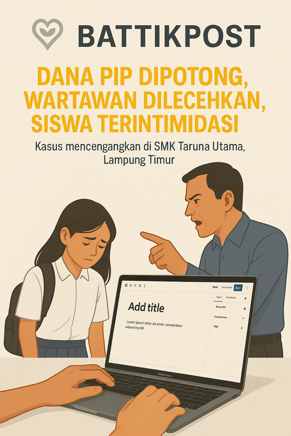 Battikpost.site, Lampung Timur — Dugaan pemotongan dana PIP kembali mencuat di SMK Taruna Utama Melinting, Lampung Timur. Rekaman percakapan antara staf Tata Usaha dan wali murid mengungkap detail pemotongan yang merugikan siswa penerima bantuan pendidikan.