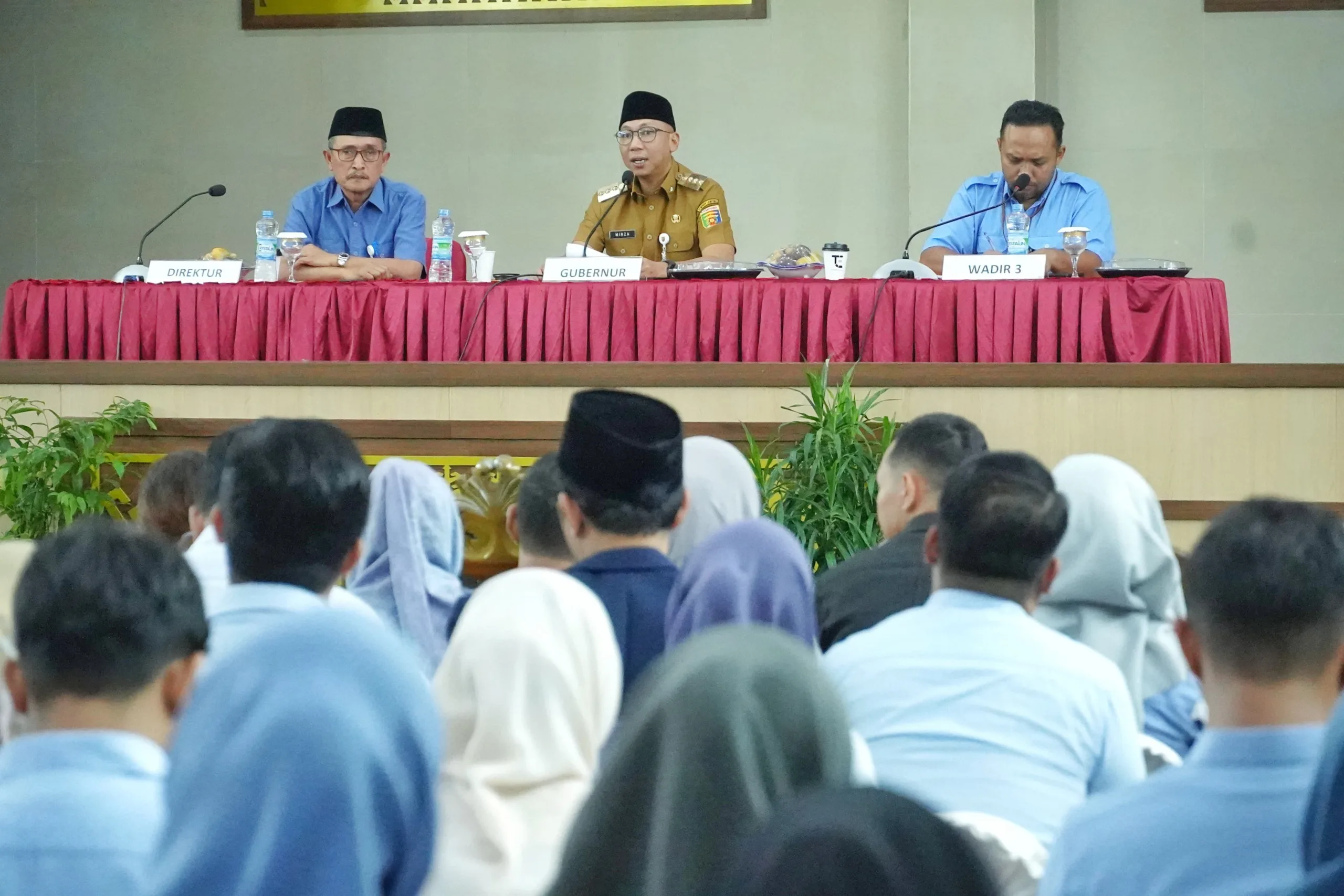 Dalam sambutannya di hadapan civitas akademika Polinela, Gubernur menyampaikan apresiasi atas sambutan hangat yang diterimanya.