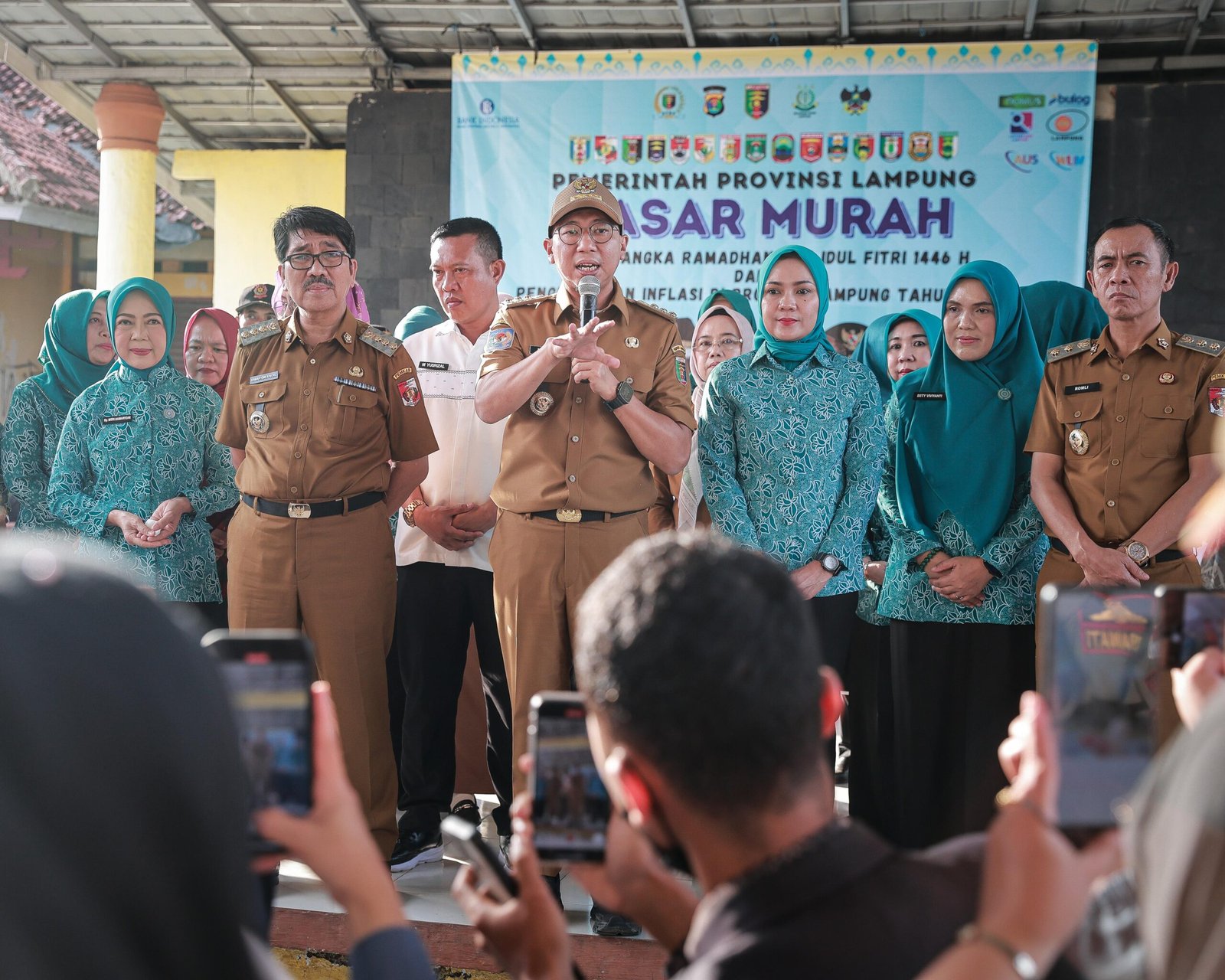 Battikpost, Lampung Utara — Gubernur Lampung, Rahmat Mirzani Djausal bersama Bupati Lampung Utara Hamartoni Ahadis meninjau Pasar Murah dalam rangka menyambut Ramadan dan menjelang Idul Fitri 1446 H, di Taman Olah Seni Kotabumi, Senin (10/3/2025).