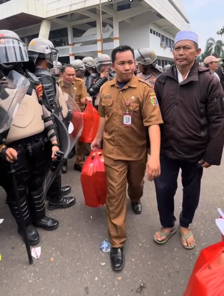 Kehadiran pegawai Pemprov dengan plastik merah berisi makanan ringan tersebut seolah menegaskan bahwa unjuk rasa tidak selalu harus tegang. Ada kalanya aksi perjuangan justru menampakkan sisi humanis yang membuat suasana lebih hangat.