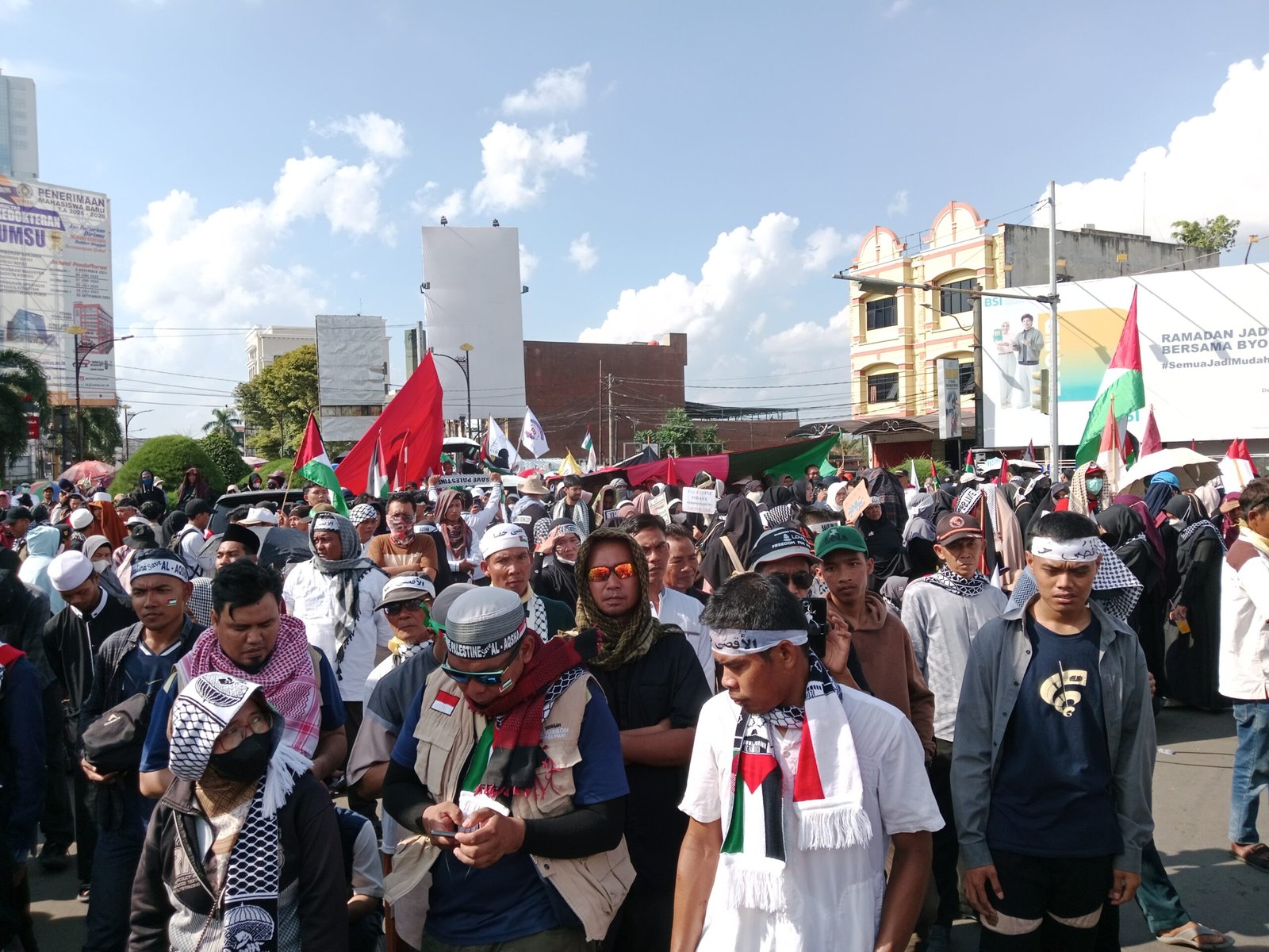 Dalam orasinya, salah satu tokoh menegaskan bahwa penderitaan rakyat Palestina adalah luka kemanusiaan yang tidak boleh didiamkan. “Kami di sini tidak hanya berdiri untuk Palestina sebagai umat Islam, tetapi juga atas nama kemanusiaan. Dunia tidak boleh menutup mata atas genosida yang terus berlangsung,” serunya disambut pekikan “Merdeka untuk Palestina!”