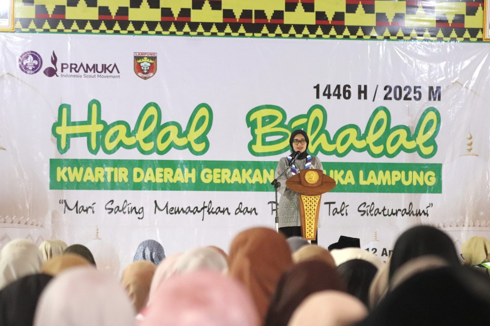 Battikpost, Lampung Timur – Wakil Gubernur Lampung, Jihan Nurlela, menghadiri acara Halal Bihalal yang diselenggarakan oleh Kwartir Daerah (Kwarda) Gerakan Pramuka Lampung di Rumah Dinas Bupati Lampung Timur, Selasa (15/4/2025).